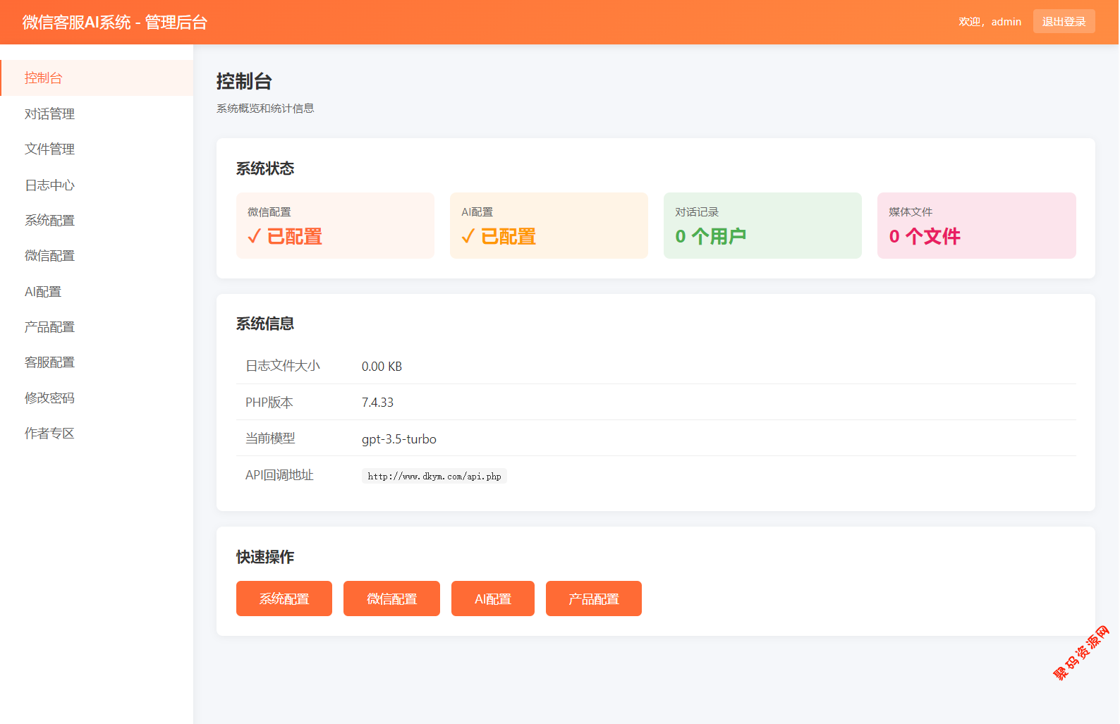 – **控制台**:实时查看系统状态、配置状态、对话数量等
