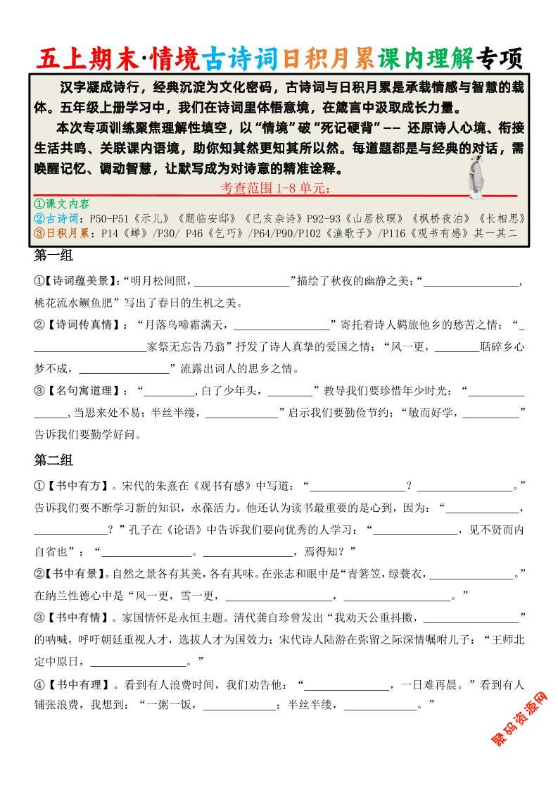 聚码网 五年级 五上语文期末·情境古诗词日积月累课内理解专项 http://www.appstore168.com/110660.html