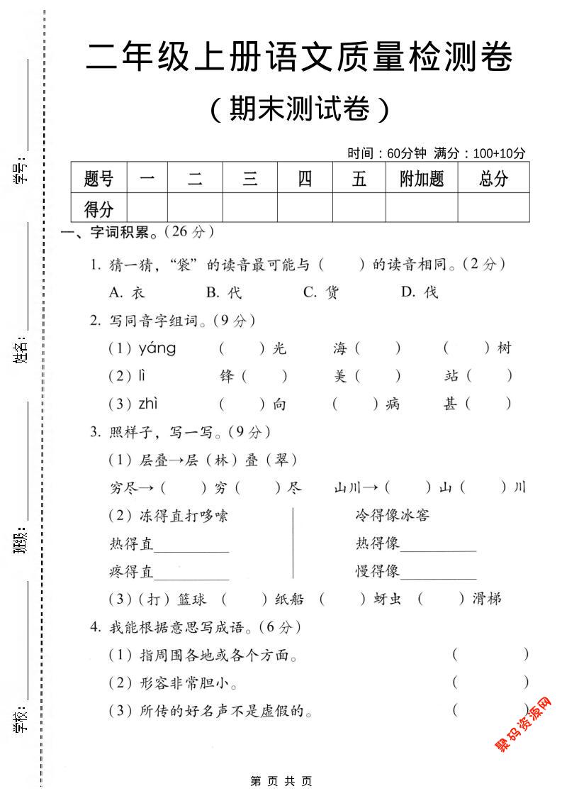 聚码网 二年级 二年级上语文期末质量测试卷 http://www.appstore168.com/110663.html