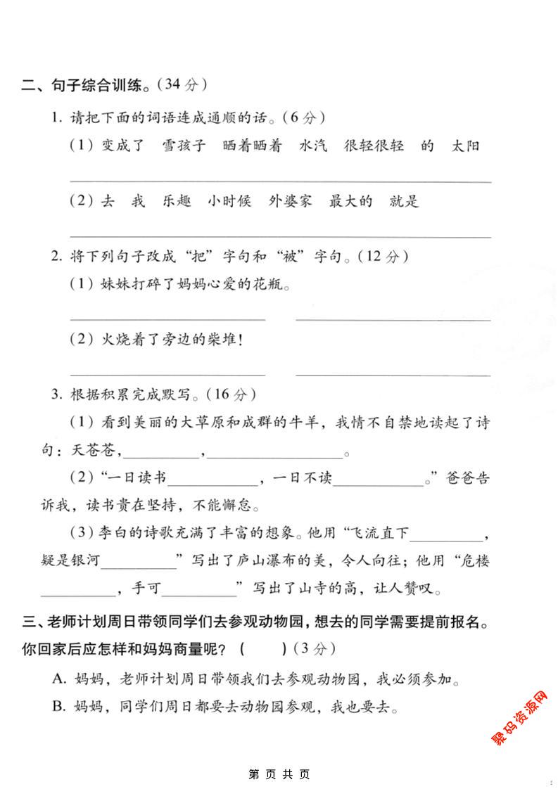 - 26年新二年级语文下寒假作业每日一练21天 2026-02-16