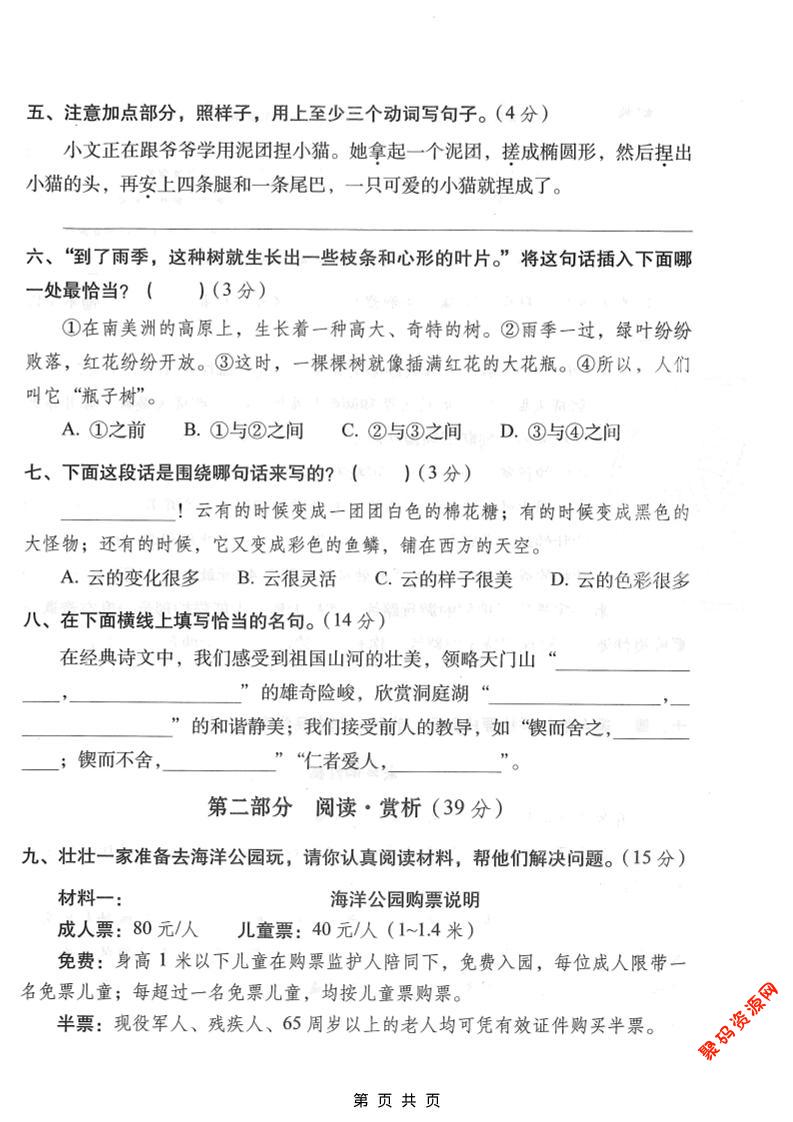聚码网 三年级 三年级上语文期末拔尖测试卷3 http://www.appstore168.com/110676.html
