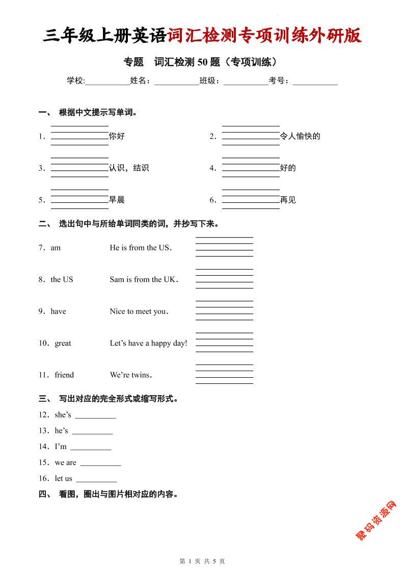 聚码网 三年级 三年级上英语词汇检测专项训练《外研版(三起)》 http://www.appstore168.com/110723.html