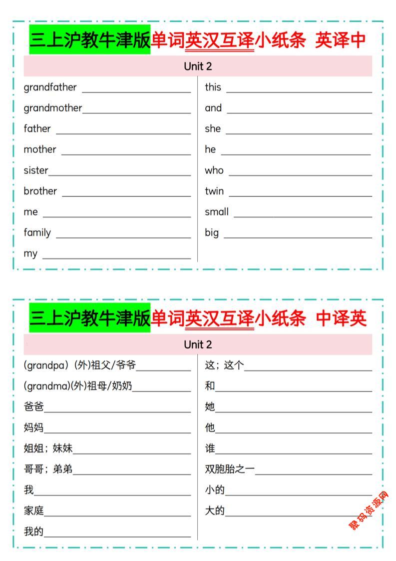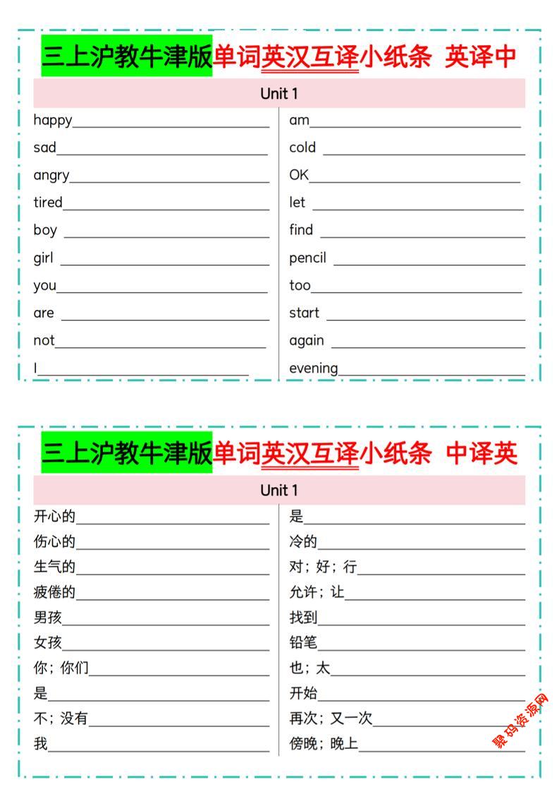 聚码网 三年级 三年级上英语单词英汉互译小纸条《沪教牛津版》 http://www.appstore168.com/110726.html