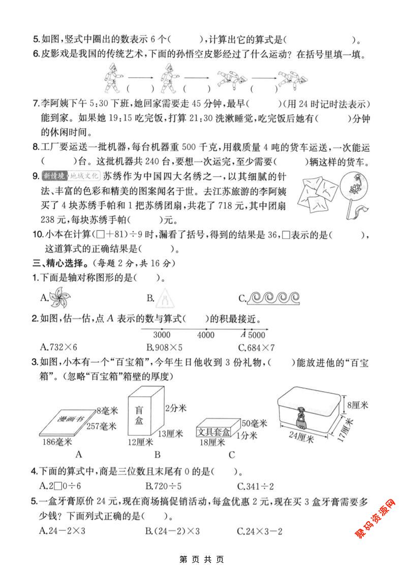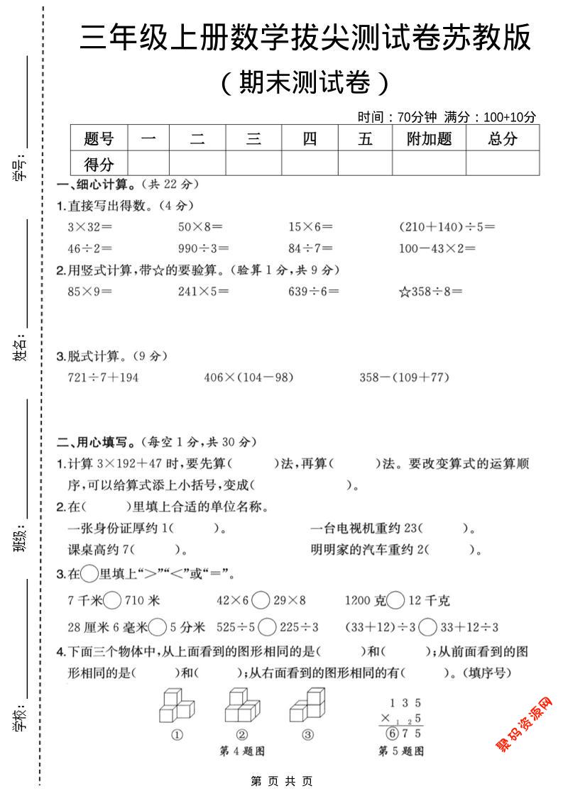 聚码网 三年级 三年级上数学期末拔尖测试卷6《苏教版》 http://www.appstore168.com/110734.html