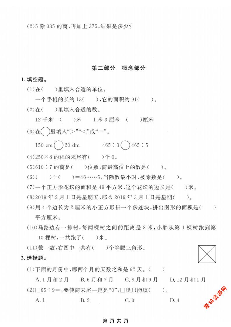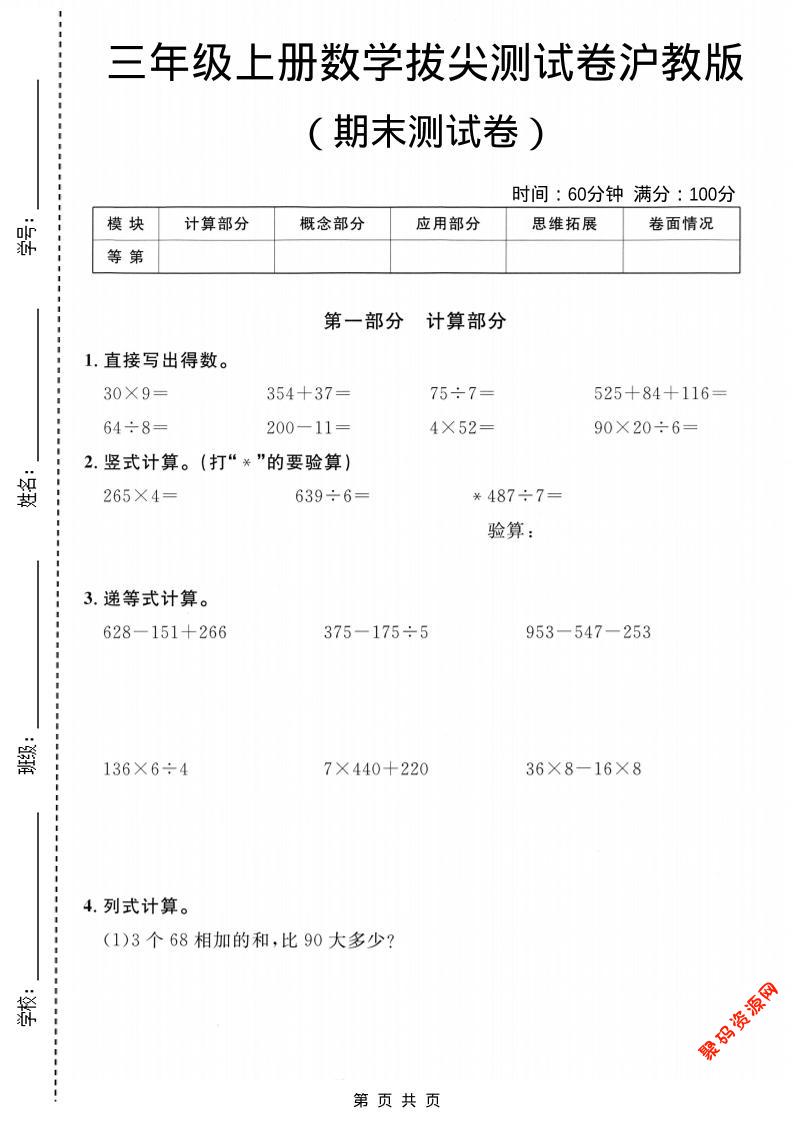 聚码网 三年级 三年级上数学期末拔尖测试卷6《沪教版》 http://www.appstore168.com/110741.html