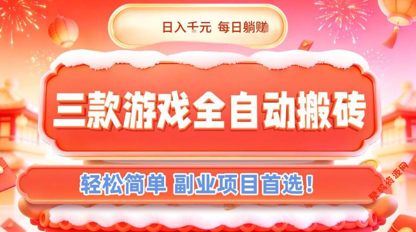 三款游戏全自动搬砖,日入1k,轻松简单,每日躺賺,副业项目首选【揭秘】