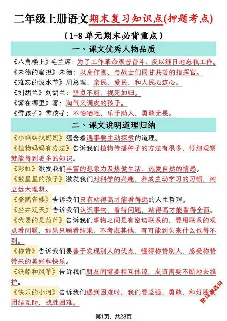 聚码网 二年级 二年级上语文期末复习知识点(押题考点) http://www.appstore168.com/111056.html
