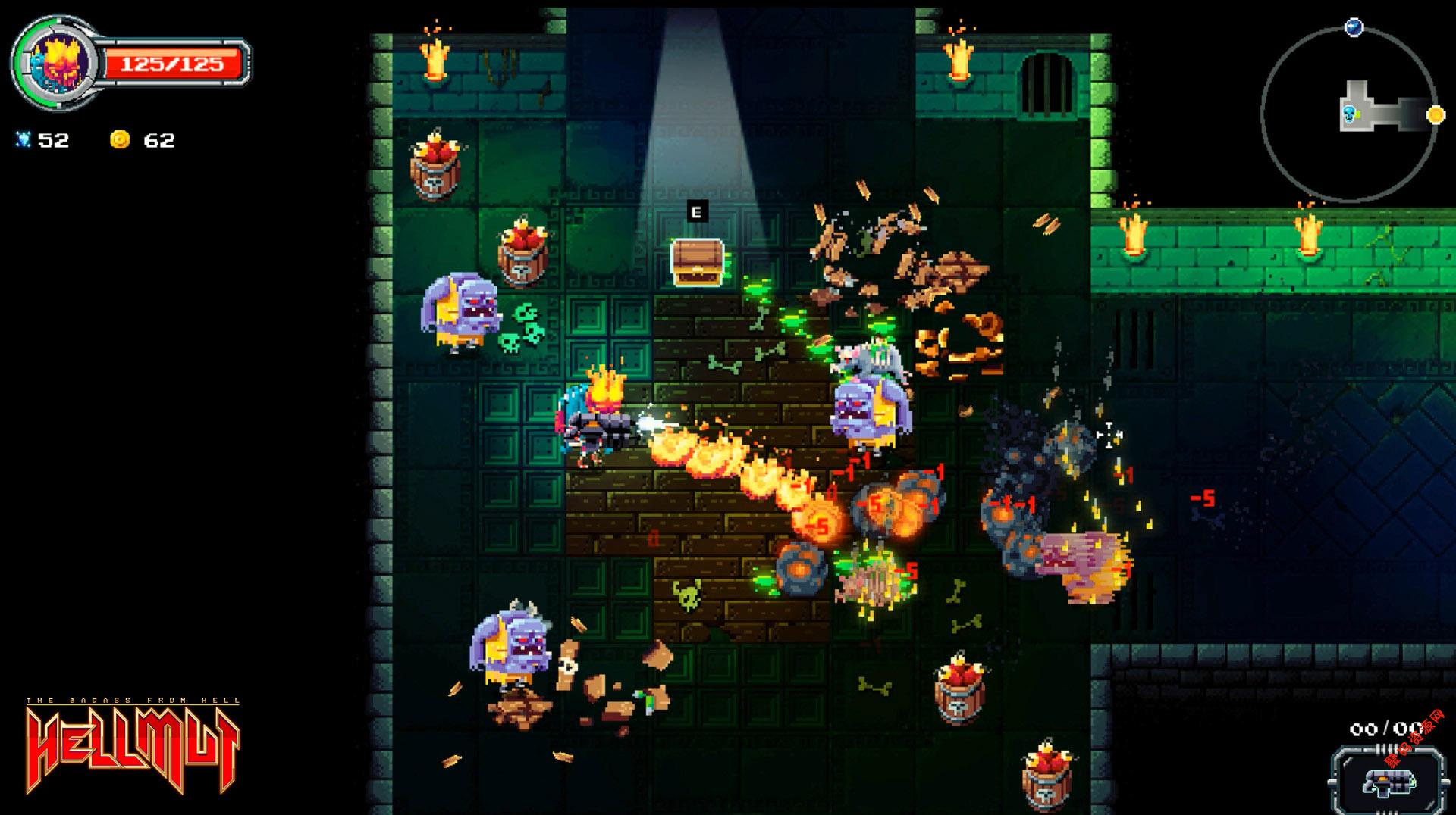 《地狱异种 来自地狱的混蛋 .Hellmut: The Badass From Hell》Switch美版英文NSZ下载 – 含1.0.0补丁,扮演一位从地狱归来的复仇者,在随机生成的地城中展开厮杀。游戏的核心在于激烈的双摇杆射击与随时切换的恶魔变身能力。