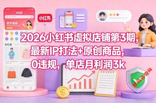 2026小红书虚拟店铺第3期,最新IP打法+原创商品,0违规,单店月利润3k+