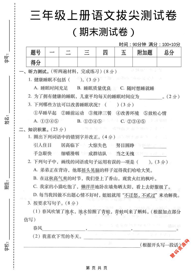 聚码网 三年级 三年级上语文期末拔尖测试卷4 http://www.appstore168.com/111601.html