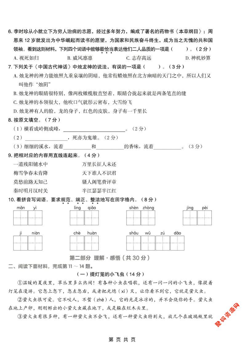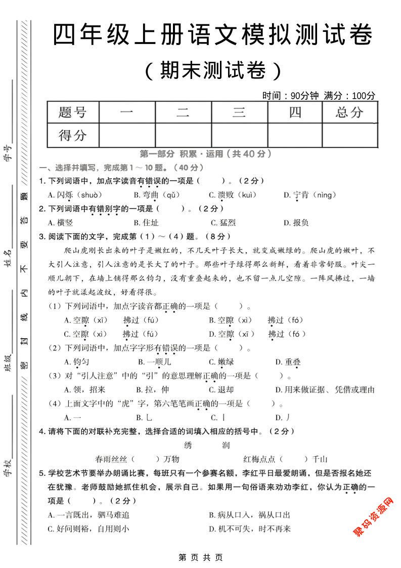 聚码网 四年级 四年级上语文期末模拟测试卷 http://www.appstore168.com/111618.html