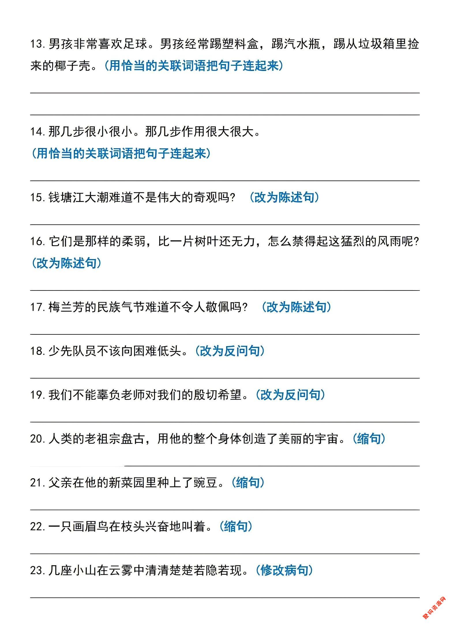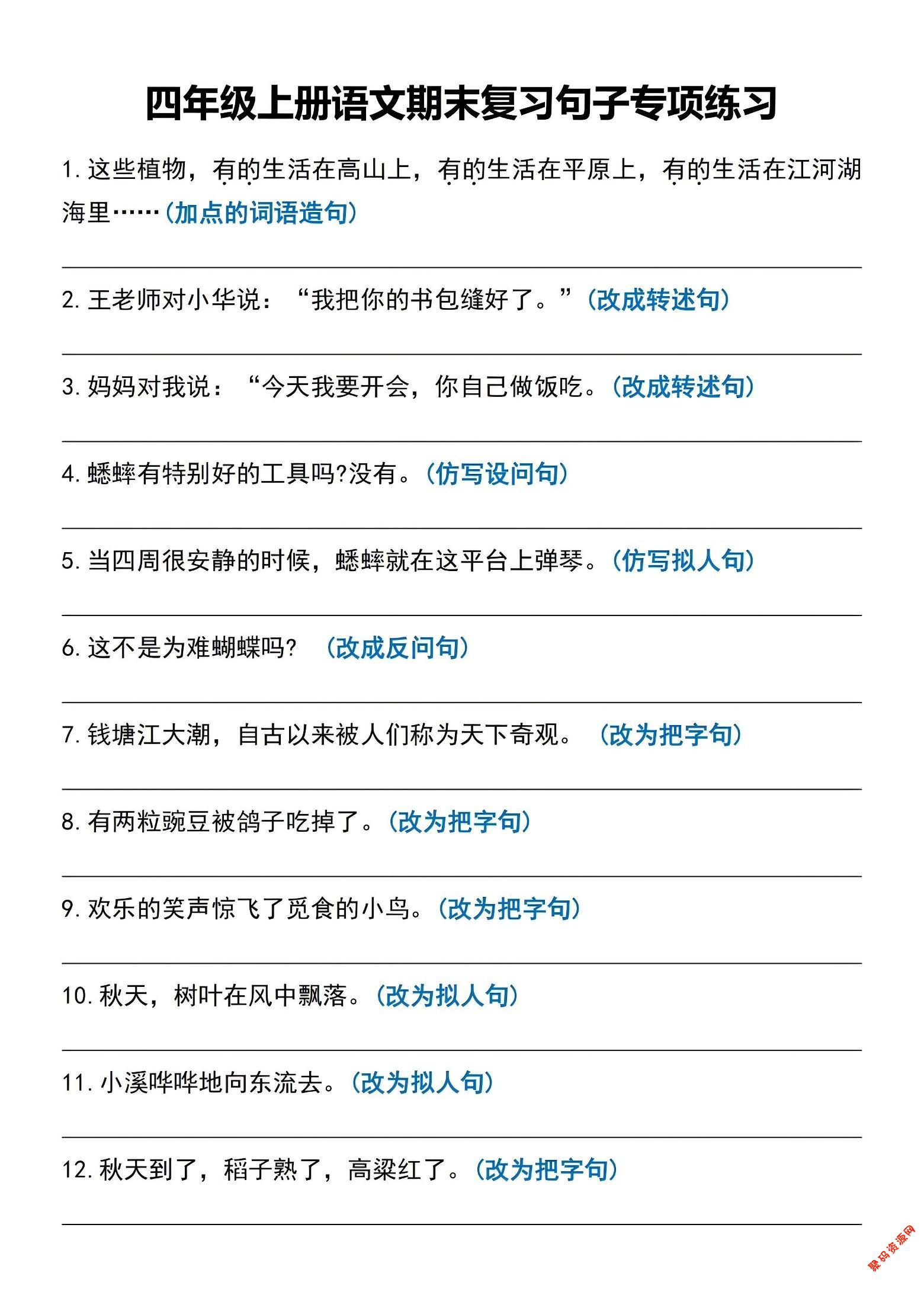 聚码网 四年级 四年级上语文期末复习句子专项练习 http://www.appstore168.com/111630.html