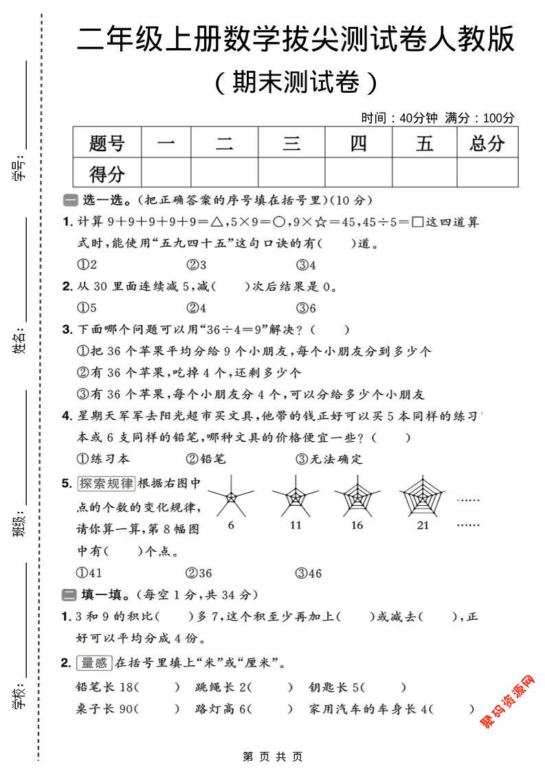 聚码网 二年级 二年级上数学期末拔尖测试卷10《人教版》 http://www.appstore168.com/111637.html