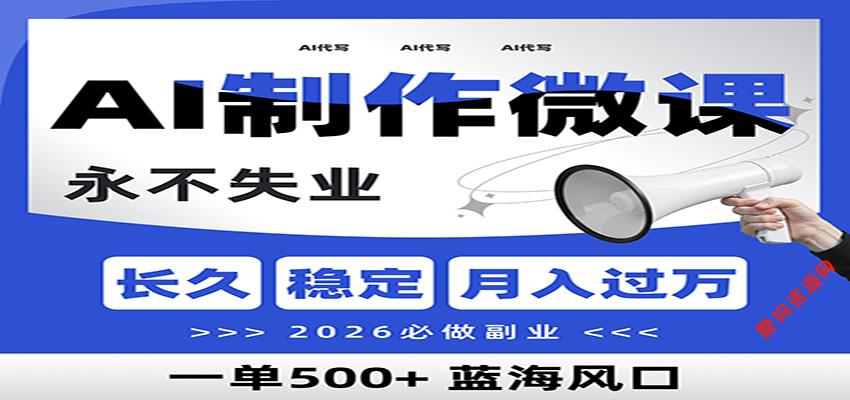聚码网 AI技术 AI代写制作微课,一单800+,2026必做副业,暴力风口【附AI工具指令】 http://www.appstore168.com/111814.html