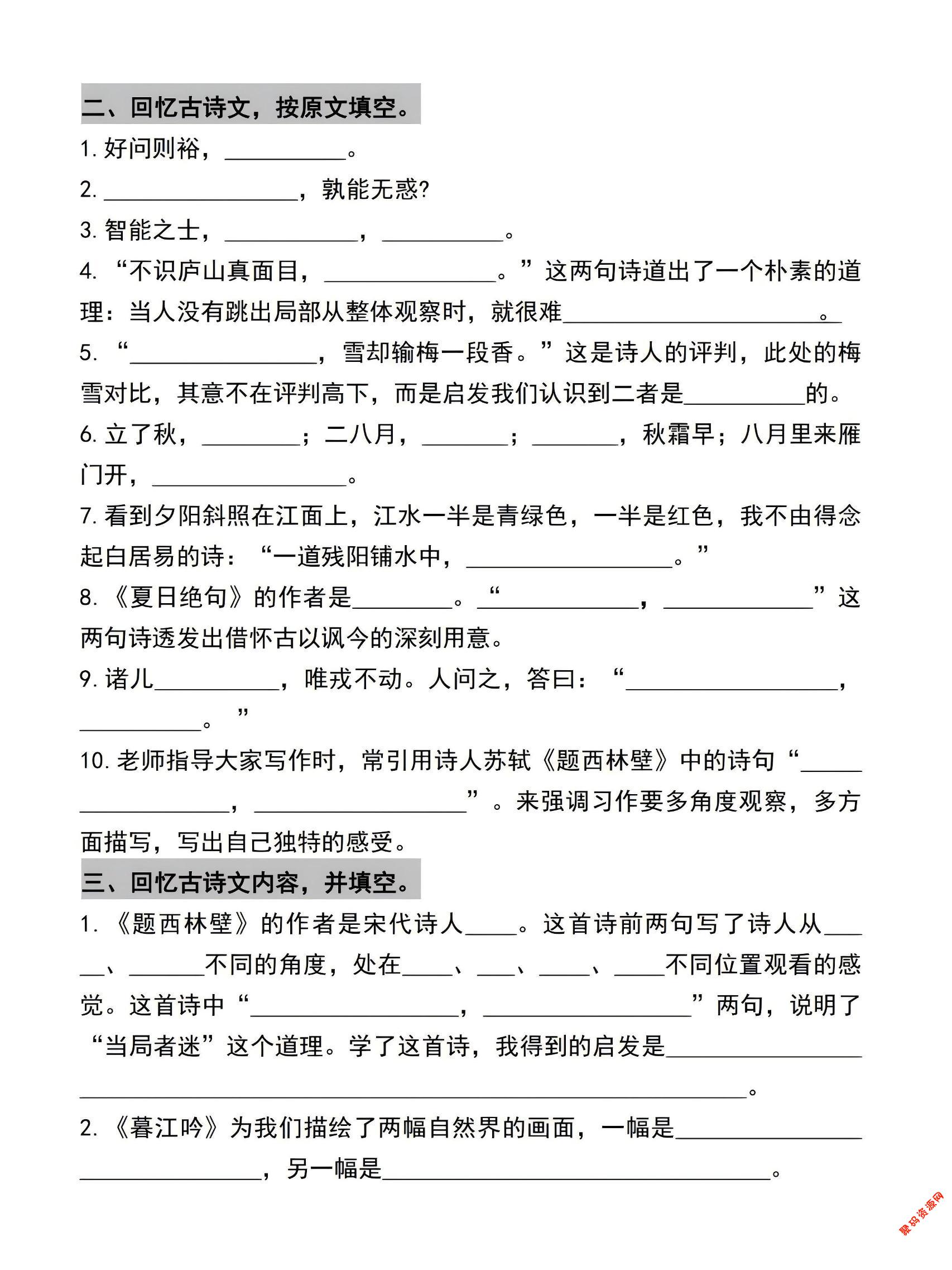 聚码网 四年级 四年级上语文期末复习古诗文日积月累专项提分练习 http://www.appstore168.com/112125.html