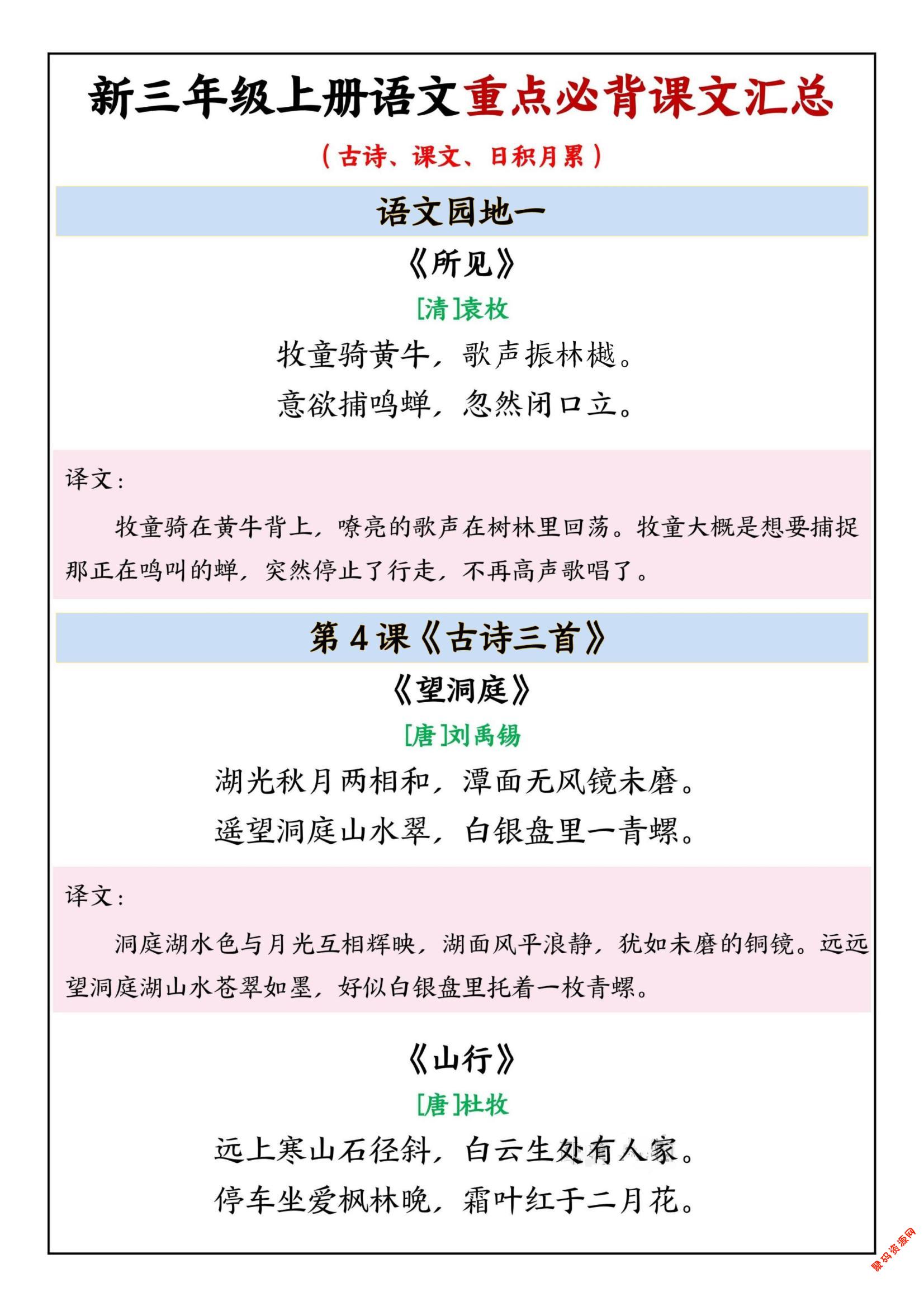 聚码网 三年级 三年级上语文重点必背课文汇总 http://www.appstore168.com/112160.html