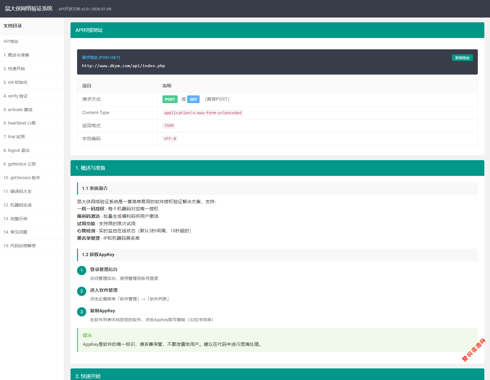 鼠大侠网络验证系统源码 一机一码授权验证 全开源