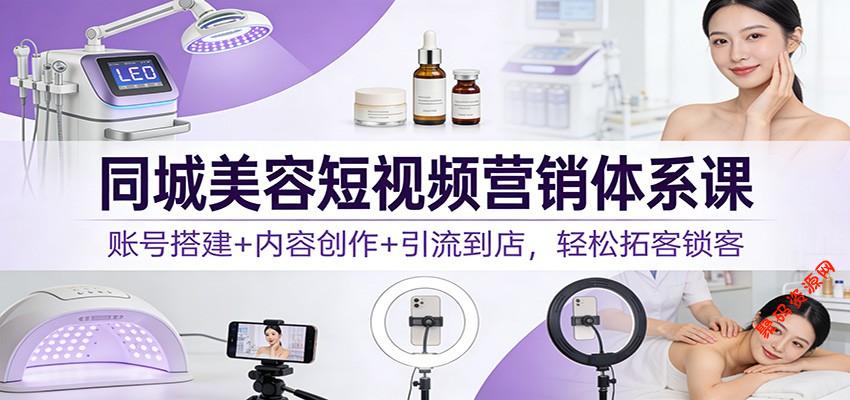 本套同城美容短视频营销全体系课程,专为美业老板、美容师打造,聚焦同城短视频获客转化全链路。课程从启蒙必修课切入,拆解运营破局思路与六大误区;详解美容院账号注册养号、专属设计技巧及平台新规;提供六类爆款内容模板与低成本拍摄剪辑方法;传授高转化用户定位、同城推荐机制及数据复盘技巧;最后落地评论私信回复、到店转化动作设计,助力美容院快速掌握短视频营销逻辑,实现同城精准引流、高效锁客。