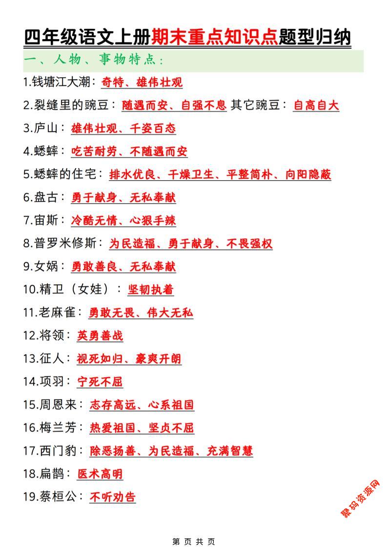 聚码网 四年级 四年级上语文期末重点知识点题型归纳 http://www.appstore168.com/112780.html