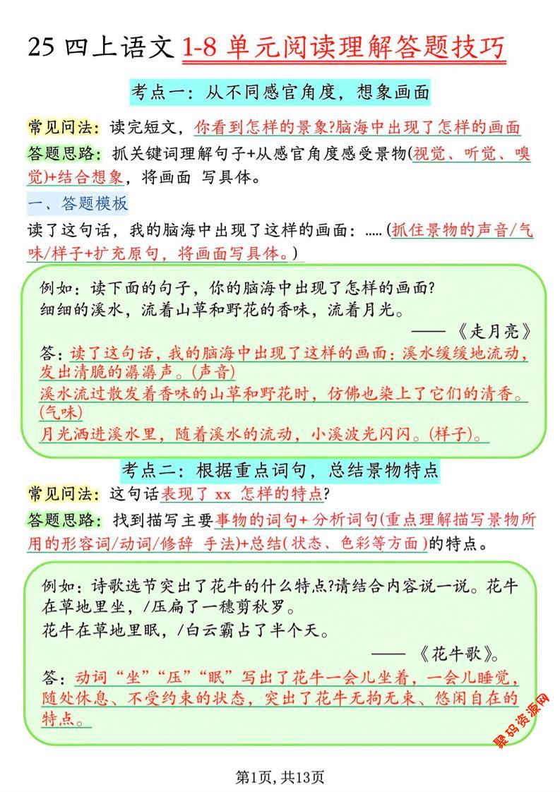 聚码网 四年级 四年级上语文1-8单元阅读理解答题技巧 http://www.appstore168.com/112789.html