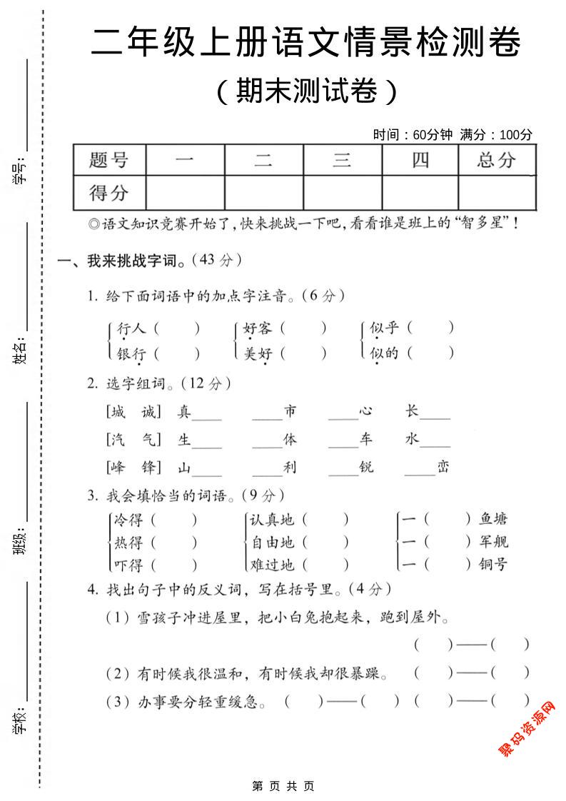聚码网 二年级 二年级上语文期末情景测试卷7 http://www.appstore168.com/112808.html