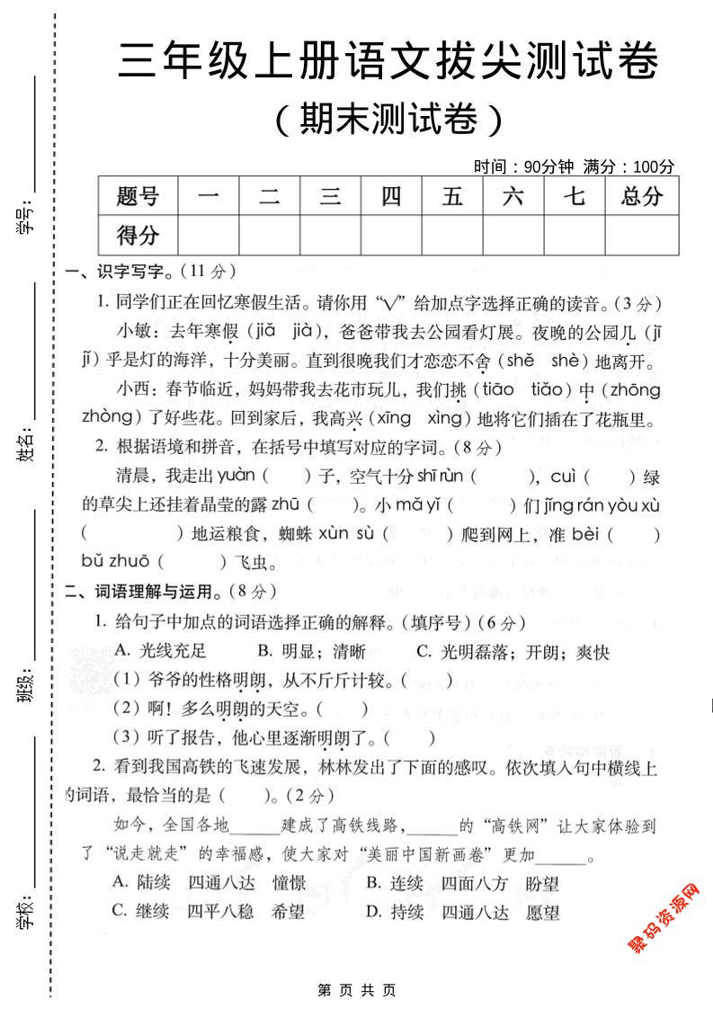 聚码网 三年级 三年级上语文期末拔尖测试卷2 http://www.appstore168.com/112823.html