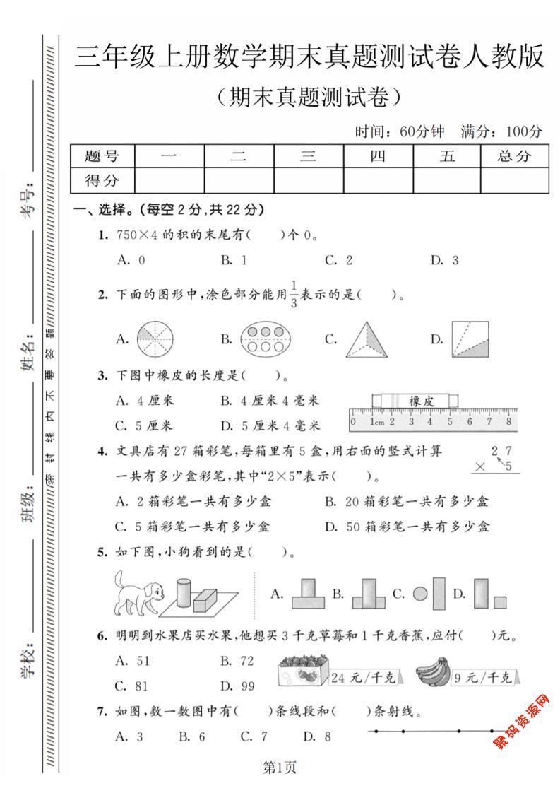 聚码网 三年级 三年级上数学期末真题测试卷4《人教版》 http://www.appstore168.com/112837.html