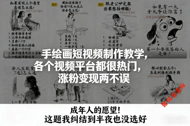 手绘画短视频制作教学,各个视频平台都很热门,涨粉变现两不误