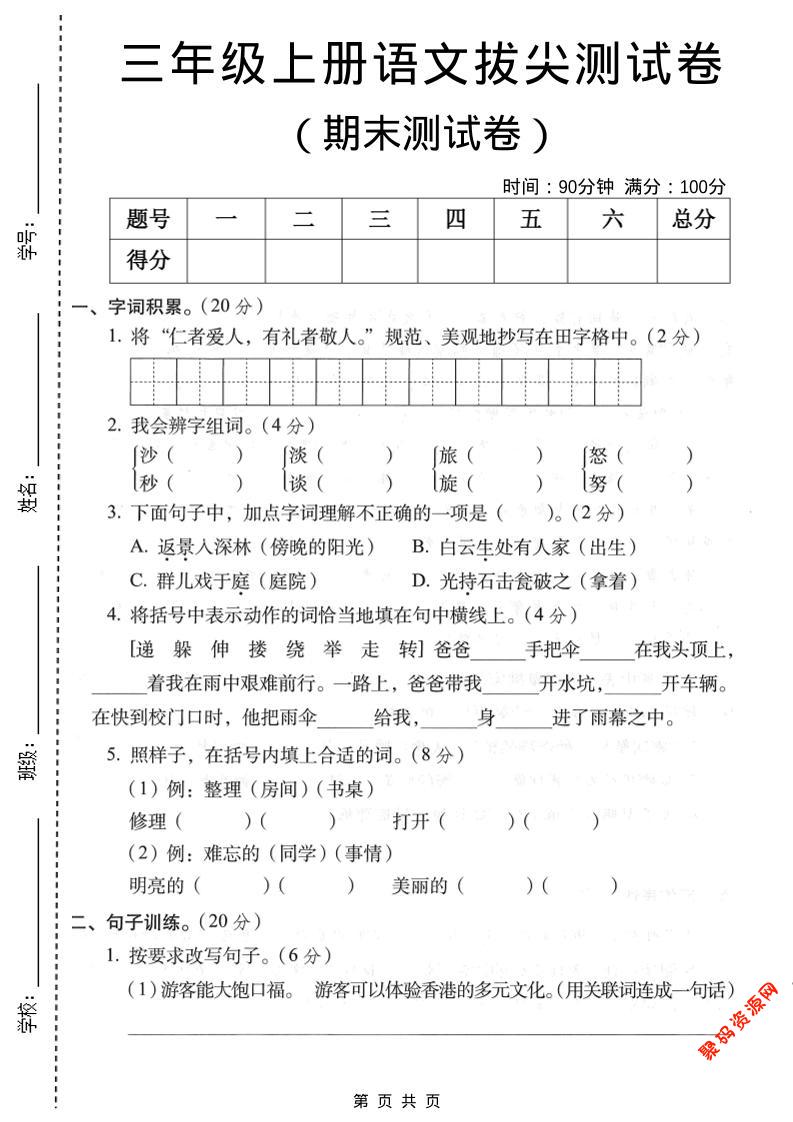聚码网 三年级 三年级上语文期末拔尖测试卷1 http://www.appstore168.com/113084.html