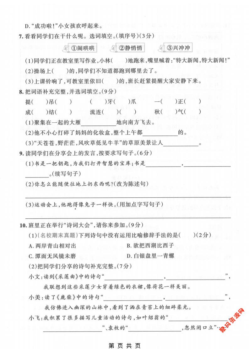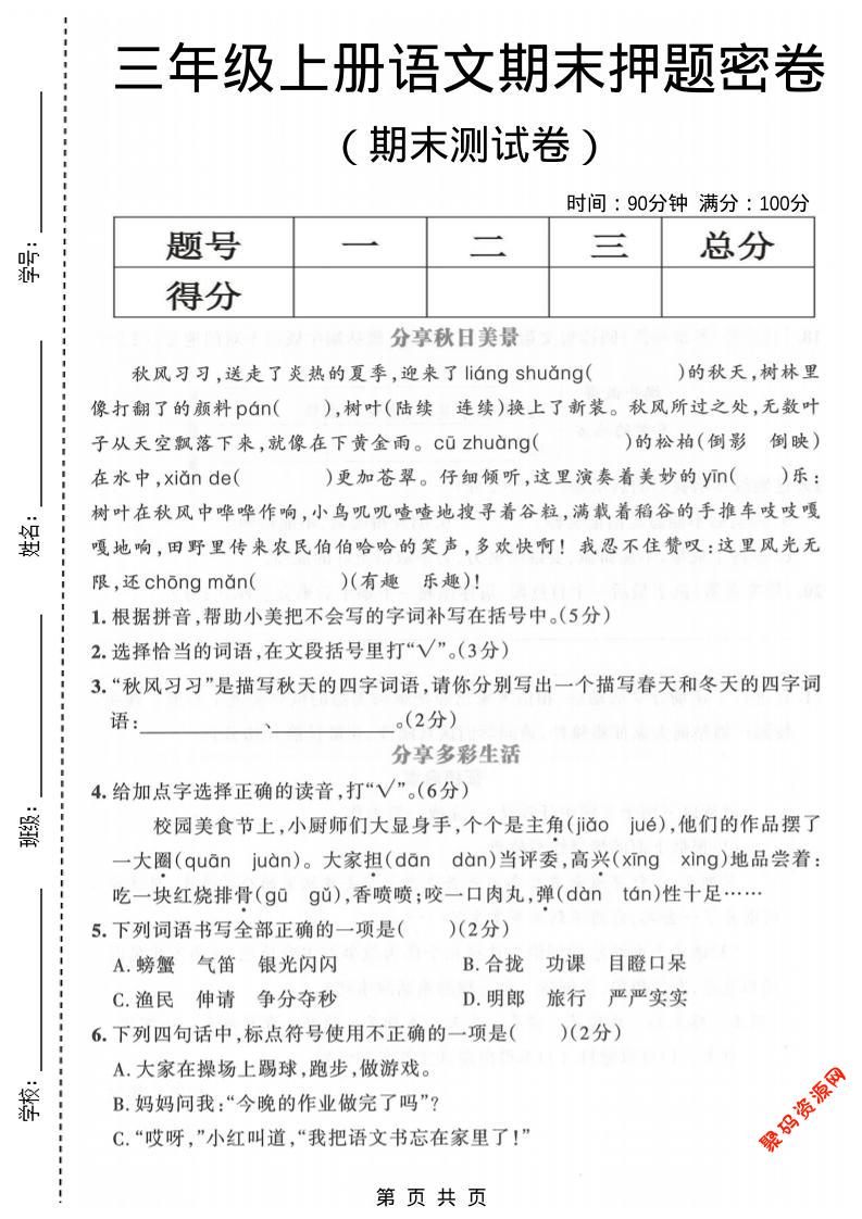 聚码网 三年级 三年级上语文期末押题测试卷5 http://www.appstore168.com/113087.html