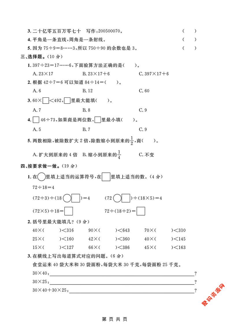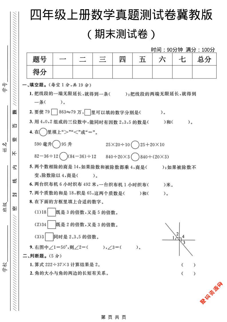 聚码网 四年级 四年级上数学期末真题测试卷《冀教版》 http://www.appstore168.com/113127.html