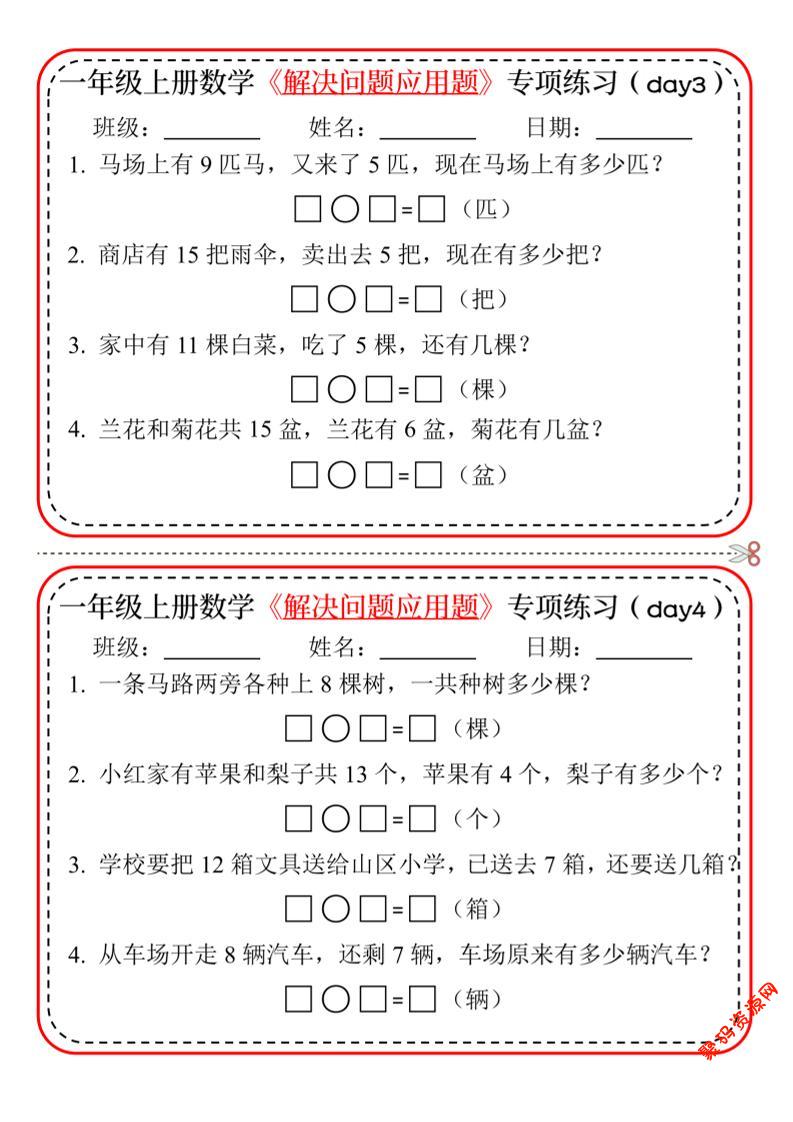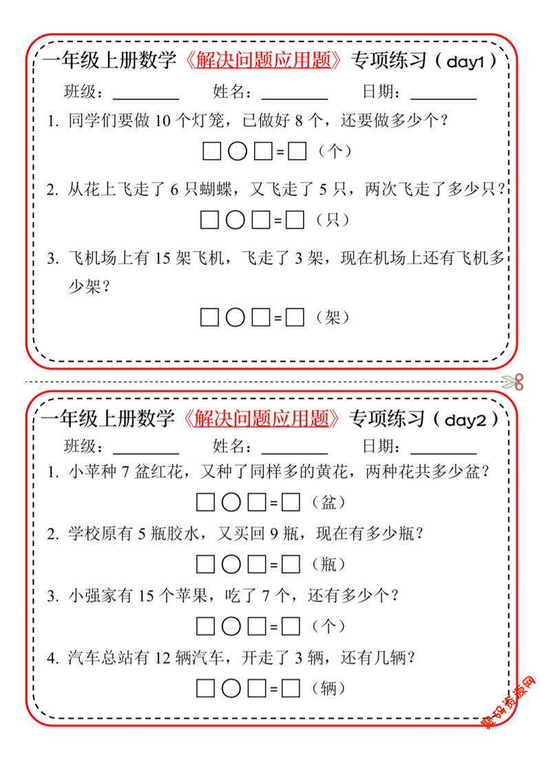 聚码网 一年级 一年级上数学解决问题应用题专项练习小纸条 http://www.appstore168.com/113142.html