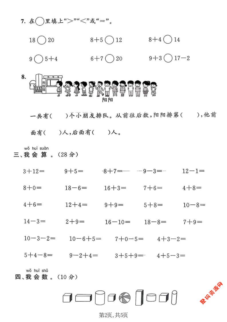 - 一年级下数学20以内加减法综合卷 2026-02-24