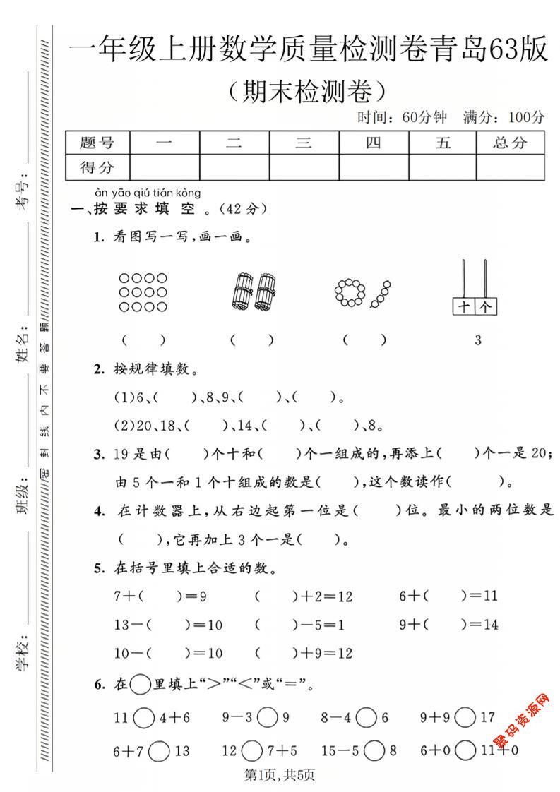 聚码网 一年级 一年级上数学期末质量检测卷2《青岛63版》 http://www.appstore168.com/113298.html