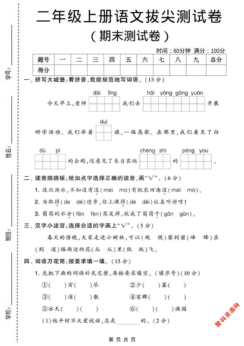 聚码网 二年级 二年级上语文期末拔尖测试卷2 http://www.appstore168.com/113327.html
