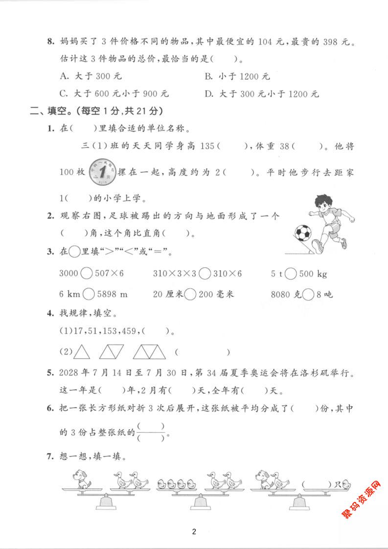 聚码网 三年级 三年级上数学期末达标测试卷《西师版》 http://www.appstore168.com/113337.html