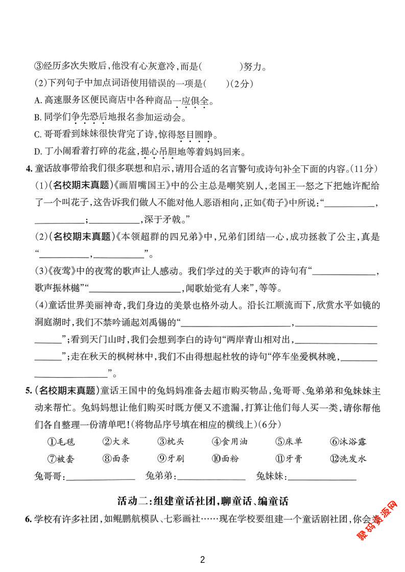 聚码网 三年级 25-26三上语文期末情境素养卷(一)含答题卡+答案12页 http://www.appstore168.com/113352.html