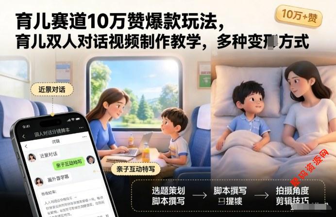 育儿赛道10万赞爆款玩法,育儿双人对话视频制作教学,多种变现方式