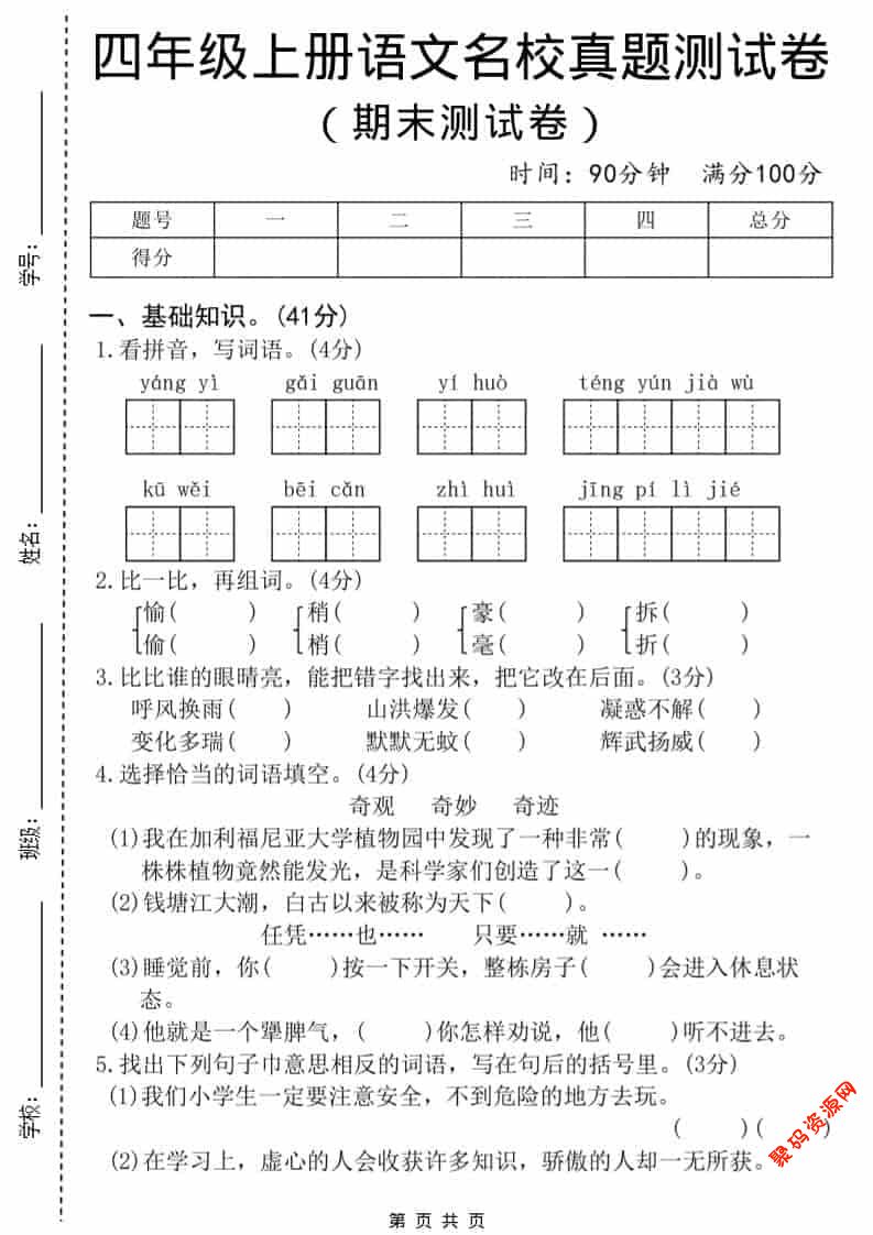 聚码网 四年级 四年级上语文期末名校真题测试卷8 http://www.appstore168.com/113518.html