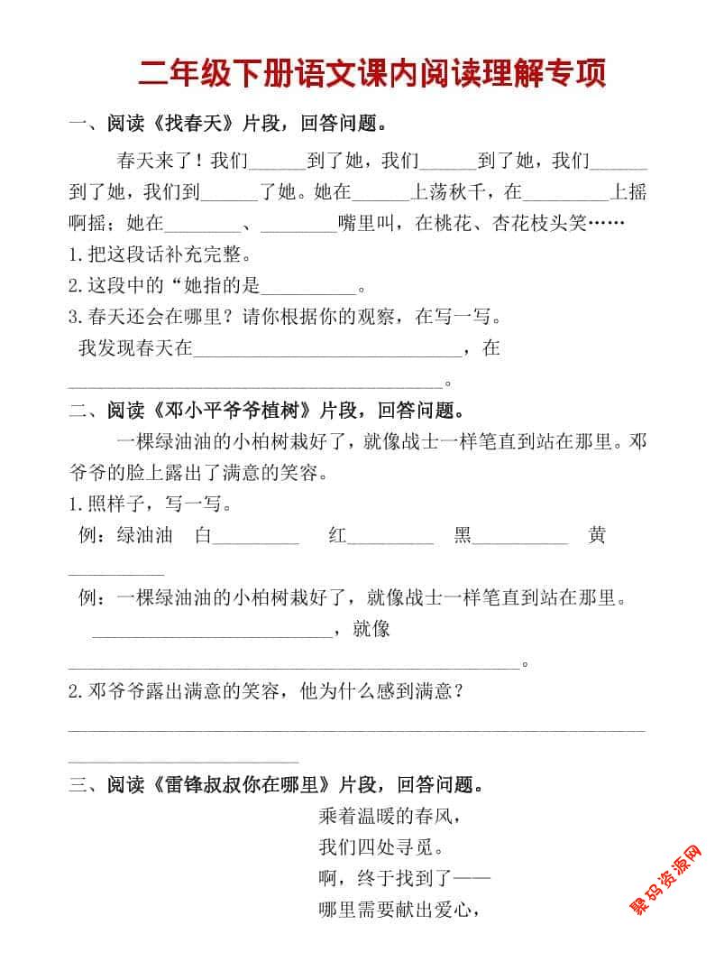 聚码网 二年级 二年级上语文课内阅读专项训练 http://www.appstore168.com/113577.html