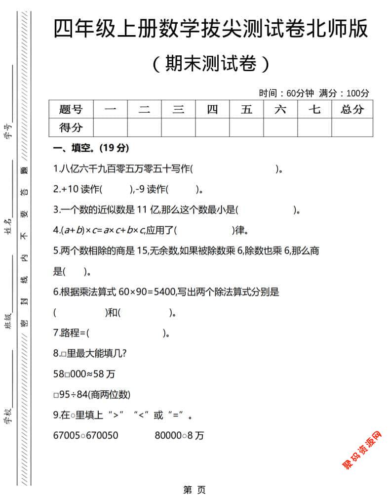 聚码网 四年级 四年级上数学期末拔尖测试卷3《北师版》 http://www.appstore168.com/113845.html