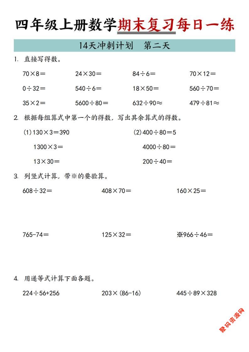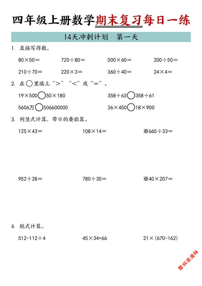 聚码网 四年级 四年级上数学期末复习14天冲刺计划 http://www.appstore168.com/113853.html