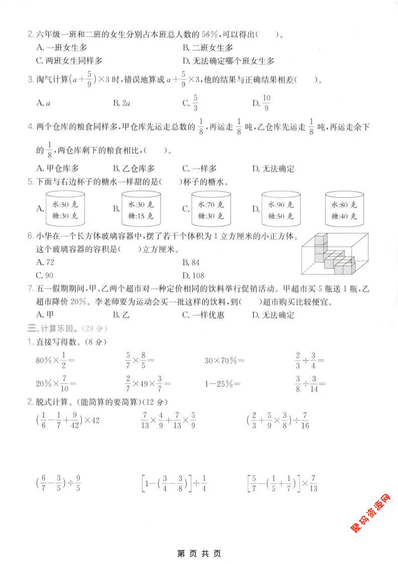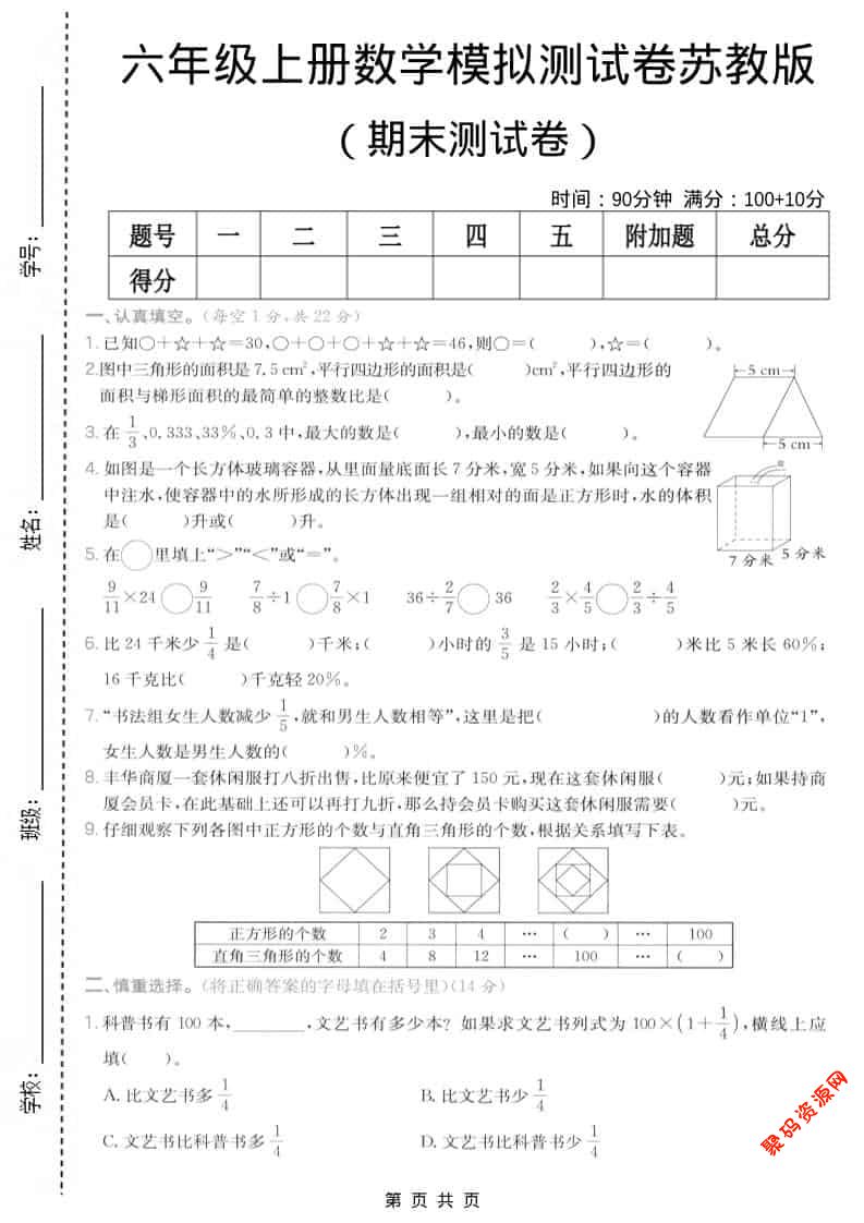 聚码网 六年级 六年级上数学期末模拟测试卷7《苏教版》 http://www.appstore168.com/113898.html