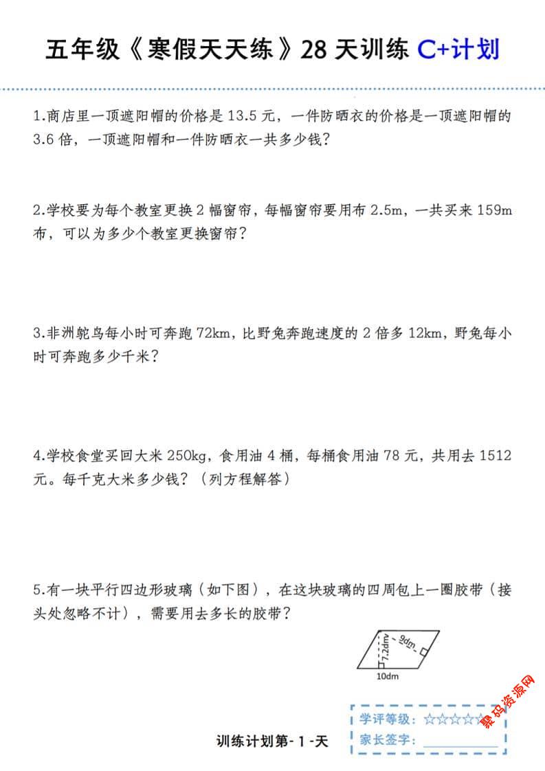 聚码网 五年级 五年级上数学寒假天天练28天训练C+计划 http://www.appstore168.com/113913.html