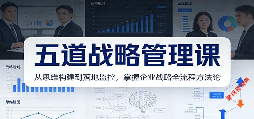 五道战略管理体系课程,专为需要构建战略思维的企业管理者、创业者打造。课程从避开战略管理误区切入,系统传授五道战略核心方法论,详解使命愿景价值、3C 模型、外部力量分析、竞争优势判断等关键内容;配套华润怡宝多维度实战案例,拆解业务优先级评估、核心职能支撑战略的底层逻辑。同时覆盖战略落地的组织能力搭建、战略评价与监控方法,提供 PPT 课件、知识卡片、实践工具等配套资料,搭配直播课与总结复盘,助力学员全面掌握战略制定、落地、监控的全流程能力。