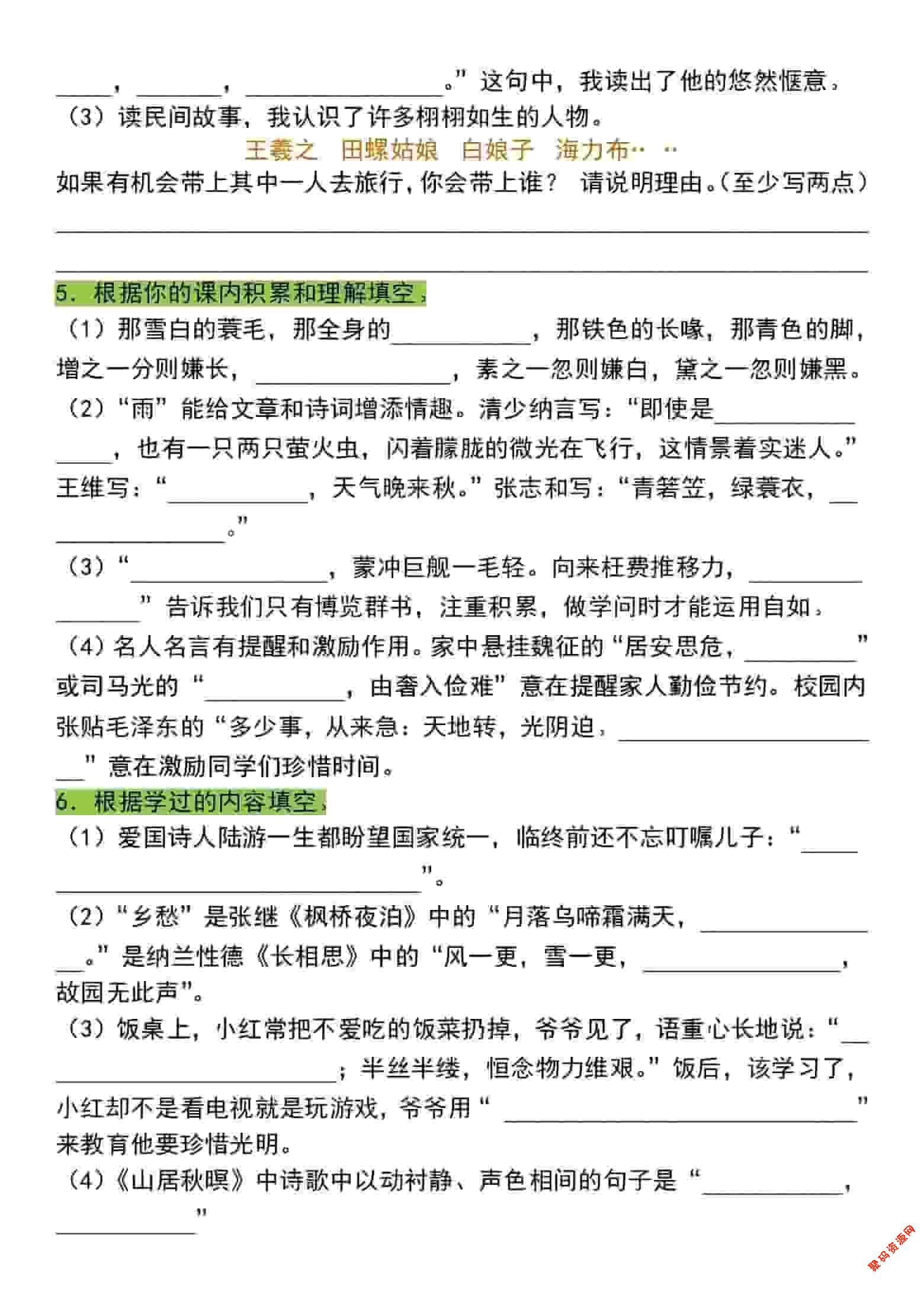 聚码网 五年级 五年级上语文期末情景式默写专项练习 http://www.appstore168.com/114084.html