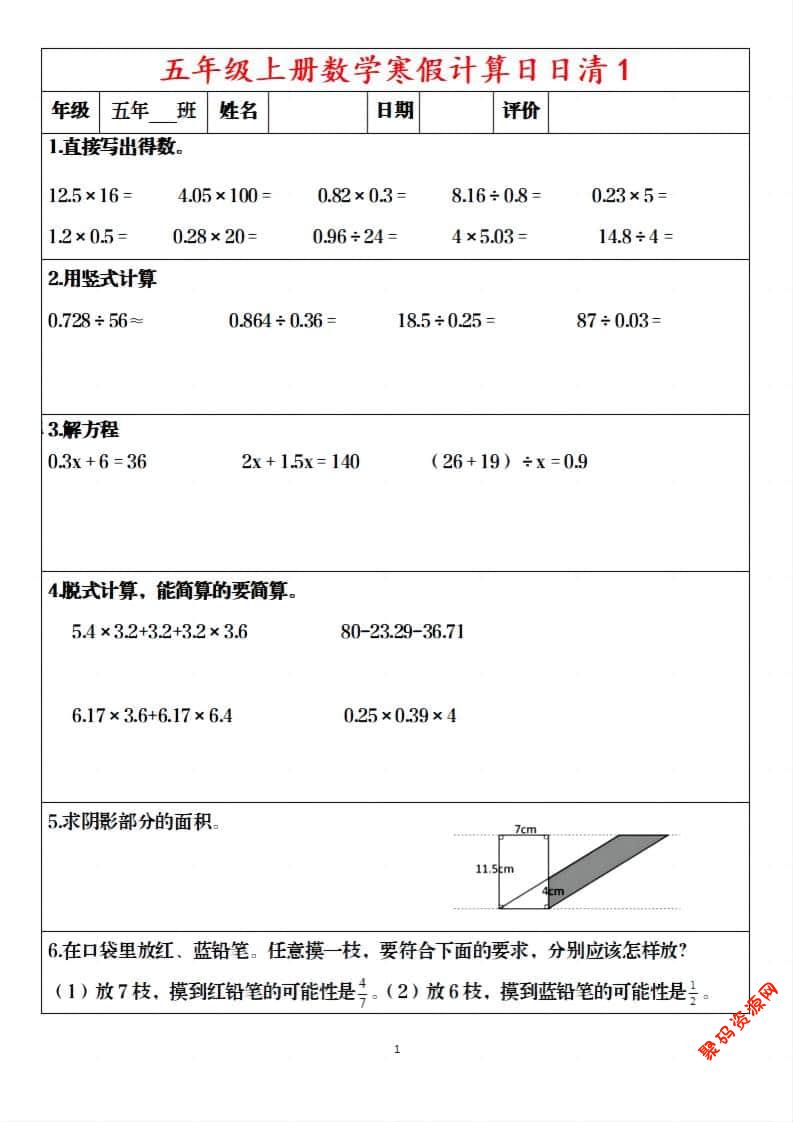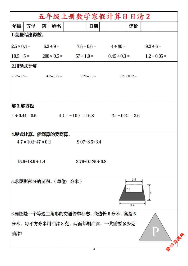 - 五年级数学下寒假作业每日一练30页 2026-02-18