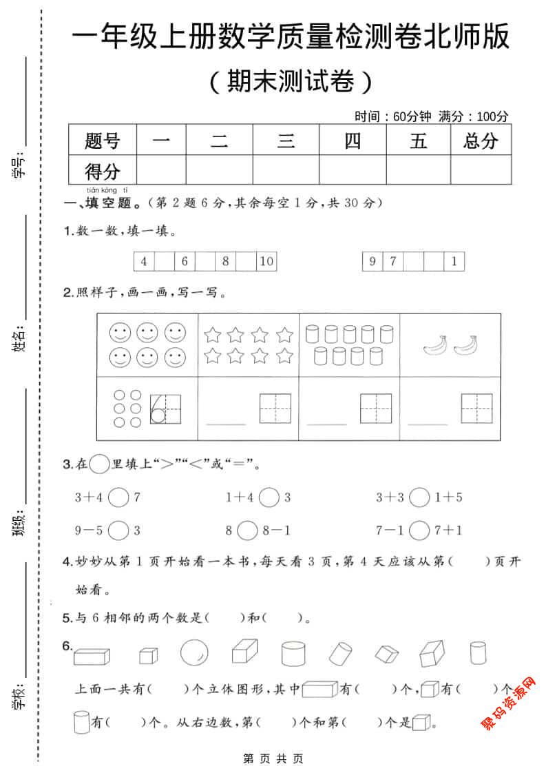 聚码网 一年级 一年级上数学期末质量检测卷2《北师版》 http://www.appstore168.com/114137.html