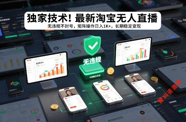 独家技术!最新淘宝无人直播:无违规不封号,矩阵操作日入1K+,长期稳定变现【揭秘】