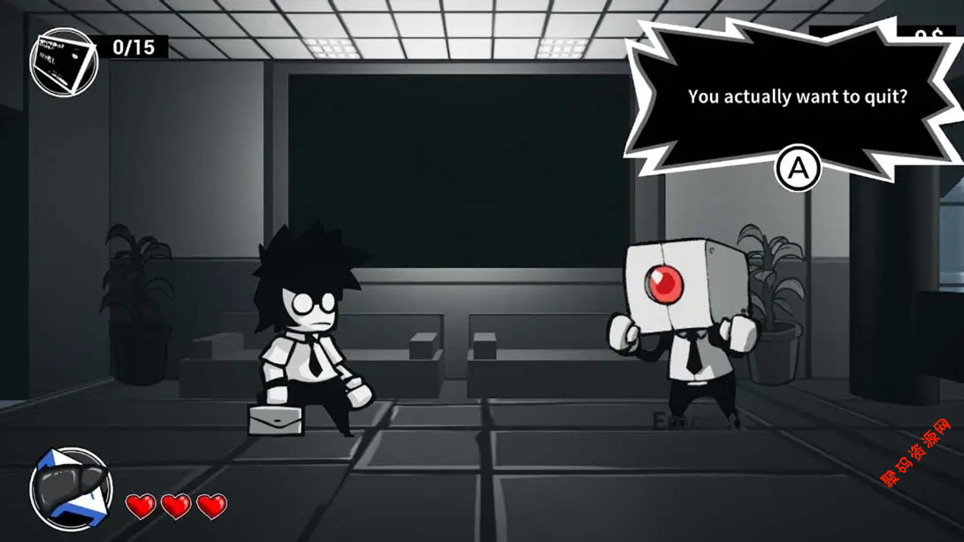 战斗系统:采用横向卷轴动作设计,玩家需击败心智混乱的同事,使用随机技能和资源提升战斗力。